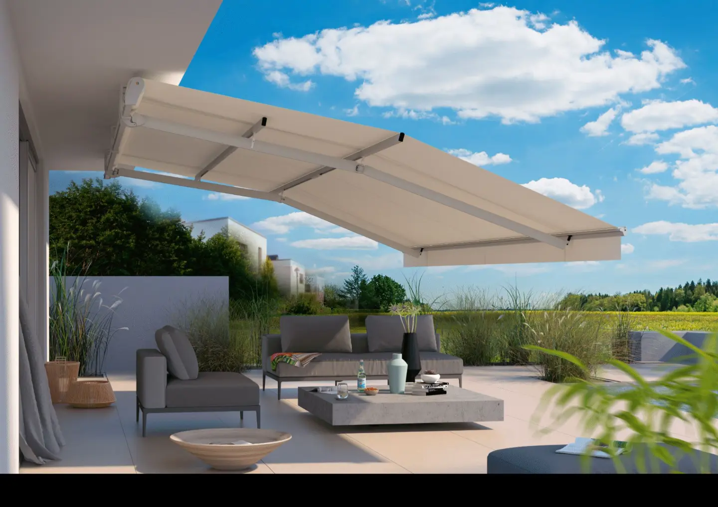 Moderne KASSETTENMARKISEN – schützen das Markisentuch bei eingefahrenem Zustand vor jedem Wetter.