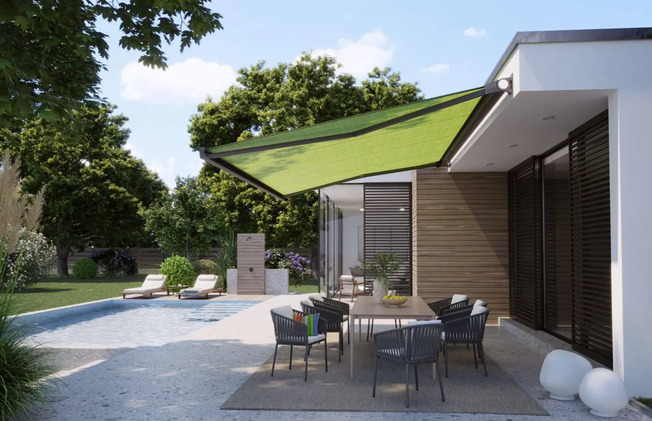 Markisen sind längst mehr als einfacher Sonnenschutz. Sie überzeugen durch Designvielfalt und Farbvergnügen und setzen am Gebäude sowie im Außen-Raum funktionale Ästhetik-Statements.