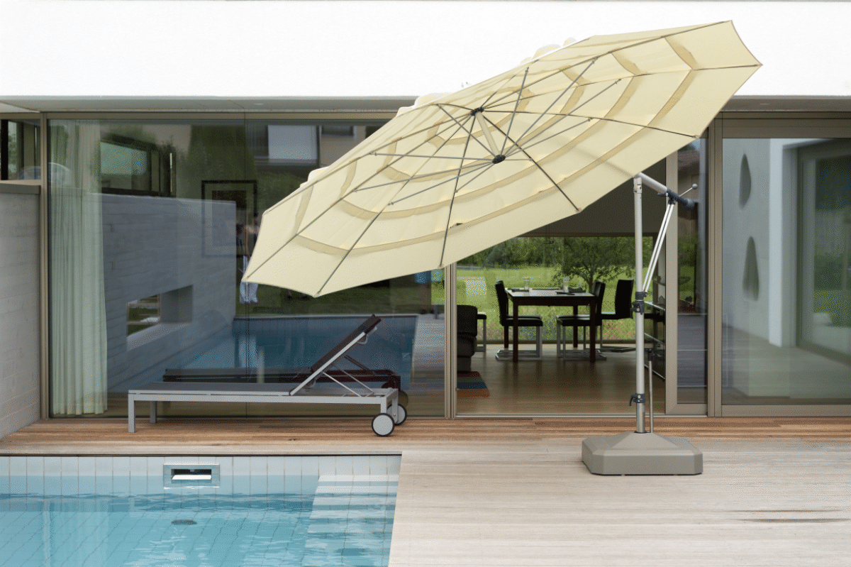 Leicht bedienbare Schirmvarianten runden kostbare Momente in Garten- und/oder Balkon ab.